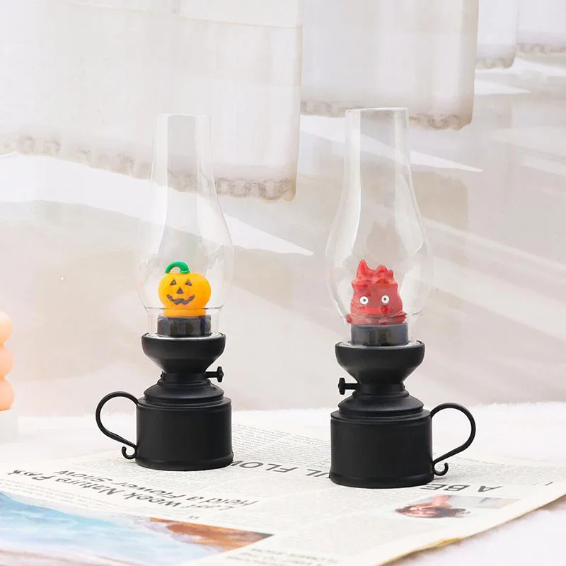Calcifer Flameless Night Light Halloween Retro Decorative Candle Light Cartoon Anime Kerosene Lamp Bedroom Bedside Table Lamp
